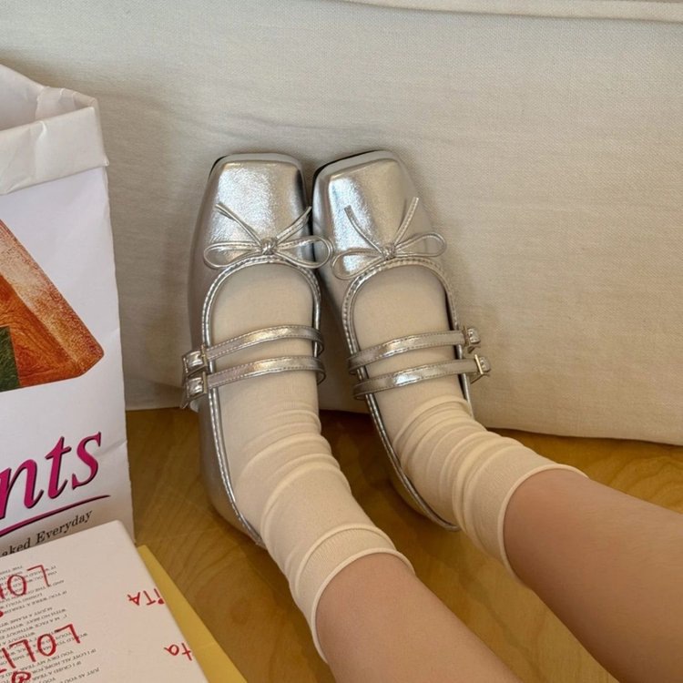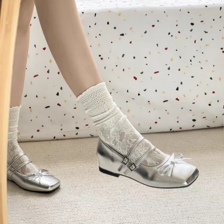 2026年新作 フレンチスタイル・シルバーメリージェーンシューズ(身長アップソール付き)